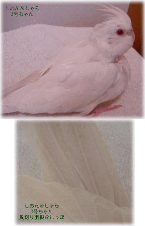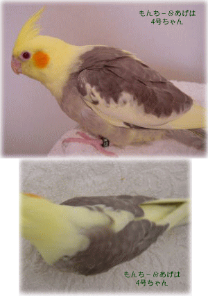 この子も後頭部や胸もとの羽根が遅れてはえてきてるところです