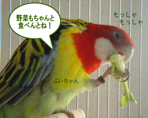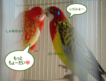 しゃあちゃんったら、ぷいちゃんから口移しでごはんをもらってるのです(もちろん、自分でも食べてるけど)。