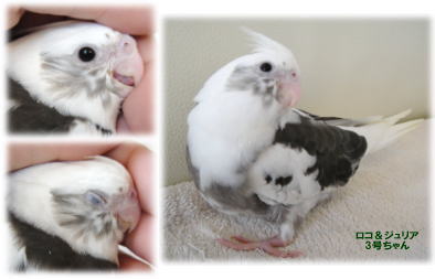 今回は上の2羽がノーマルで、いちばんちびちゃんだけがフォーンみたい。