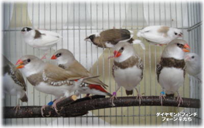 ダイヤモンドフィンチの色変わりのバリエーションは多くなくって、今のところ、日本に入ってきてるのは