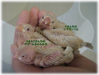 今回の雛ちゃんたちはシナモン♂が2羽、クリーム♀が4羽です。