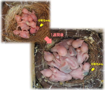 1羽だけものすご~く成長が遅くて心配してたけど、1週間でこのとおり!