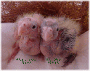 2羽とも性別鑑定の結果がでる今月終わりごろにはふわふわになった写真をUPして、